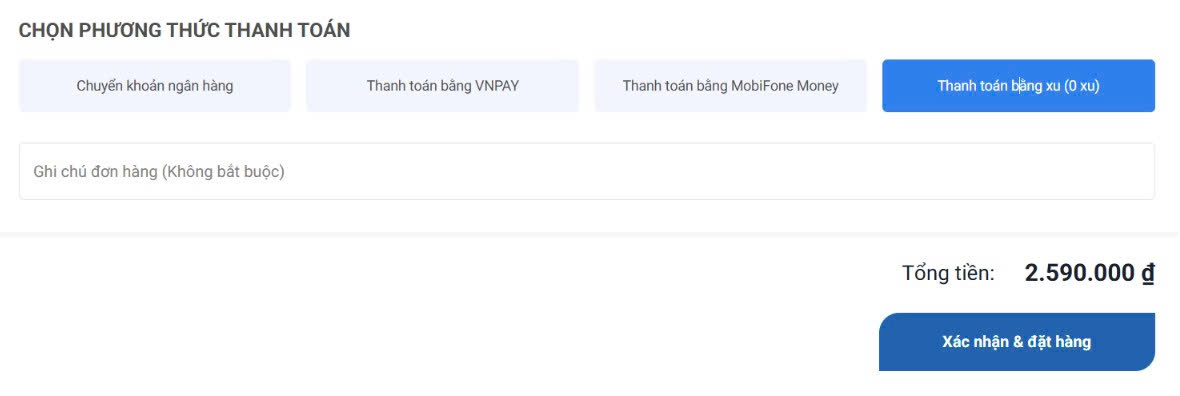 Bước 1: Quý khách lựa chọn sản phẩm, dịch vụ và chọn Thanh toán ngay hoặc Đặt hàng